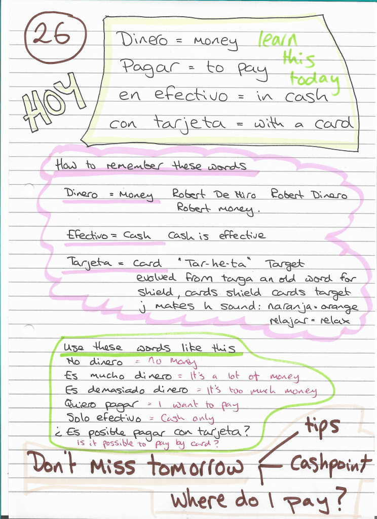 Find out, where can I pay, where is the cashpoint, and the word for a tip.