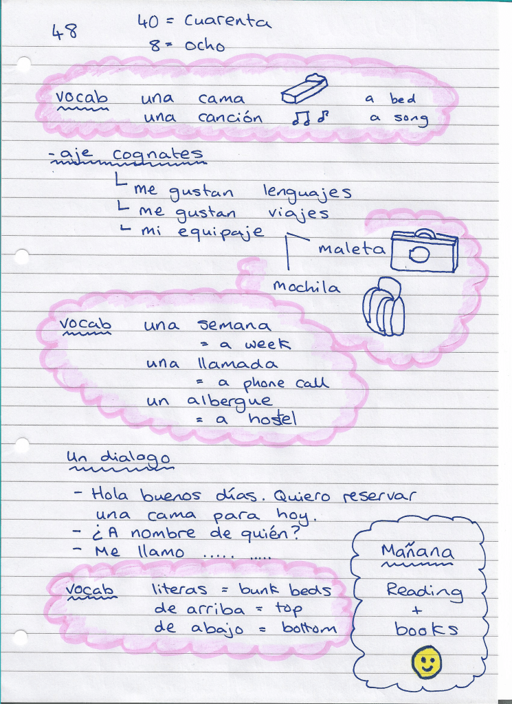 Compare my notes to yours … or just use mine! Remember, it is a good idea to pop these things down on a piece of paper you can put in your pocket. Then you have that help when you would like to revise the words and phrases later today.