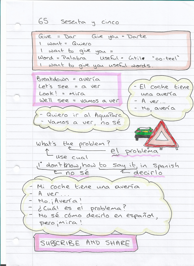 In today’s 10 minute Spanish lesson learn how to say key Spanish phrases, let’s see, we’ll see, I don’t know, as well as some key language you could use if your car breaks down. Watch the video and make notes. Write out the Spanish dialogue at the end so you can turn your Spanish listening lesson into a Spanish speaking lesson!