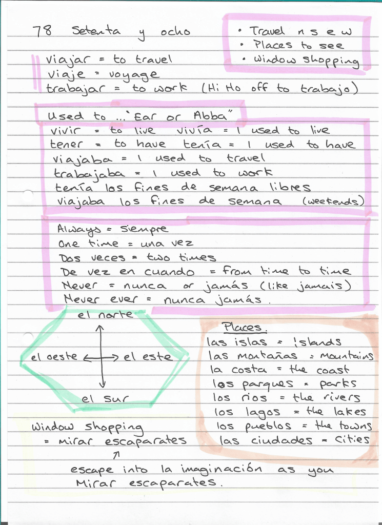 Learn the words for work and travel. Learn how to say used to in Spanish … there are two ways mentioned on this video, what are they? Learn adverbs of frequency. What do I mean? Things like always and from time to time. You will need to note them down, so get your boli and your papel.