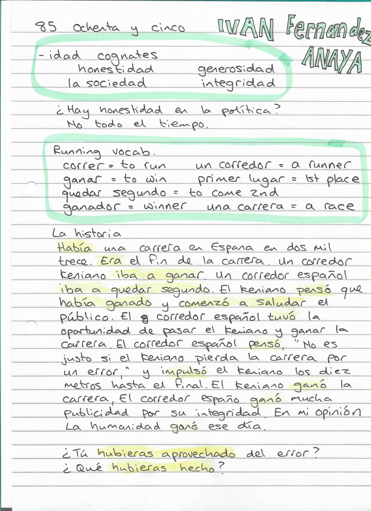Listen to the video, and write down all the words that are connected with running and racing. Next, make a story board to show what happened in the race. Did you get the name of the Spanish runner?